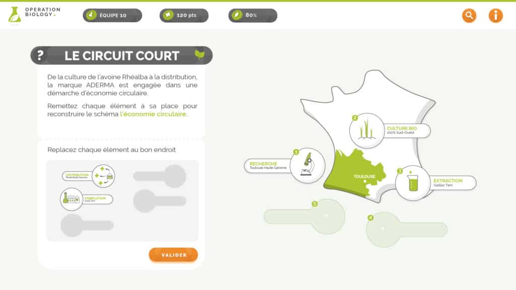 Un Serious game présentiel de 90 min, réunissant 60 participants des équipes A-DERMA, pour maîtriser les gammes de produits dermatologiques et renforcer le discours commercial.